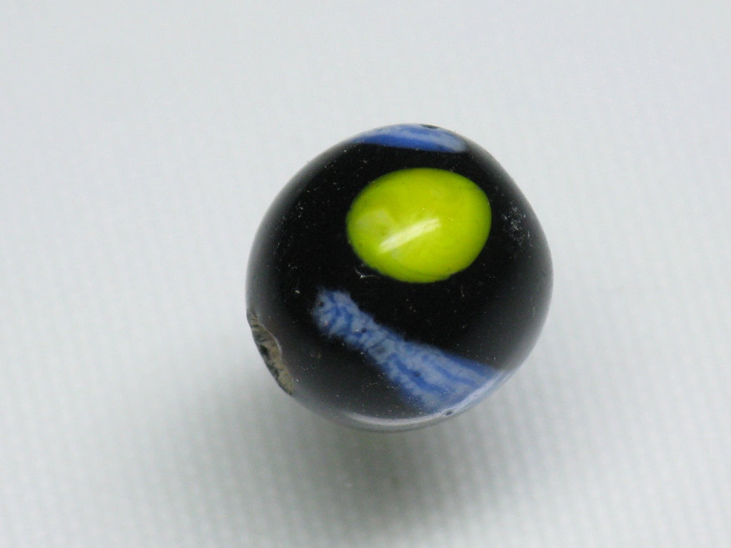 インドネシア・ジャワの工房で作られた墨流し技法に似た方法で作られた比較的小粒な丸形とんぼ玉です。歴史が長いタイプのためほとんど無限と思われるほどさまざまなデザインがあり、また、そのことで同色同デザインの再現が難しいタイプです。数十年前にインドネシアで初めて見たこれらのとんぼ玉に魅せられて今この仕事をしているといっても過言ではありません。トコ・ビーズの最も古い商品の一つです。(この商品は手作りジュエリー・アクセサリーパーツ・エスニック雑貨として販売しています)