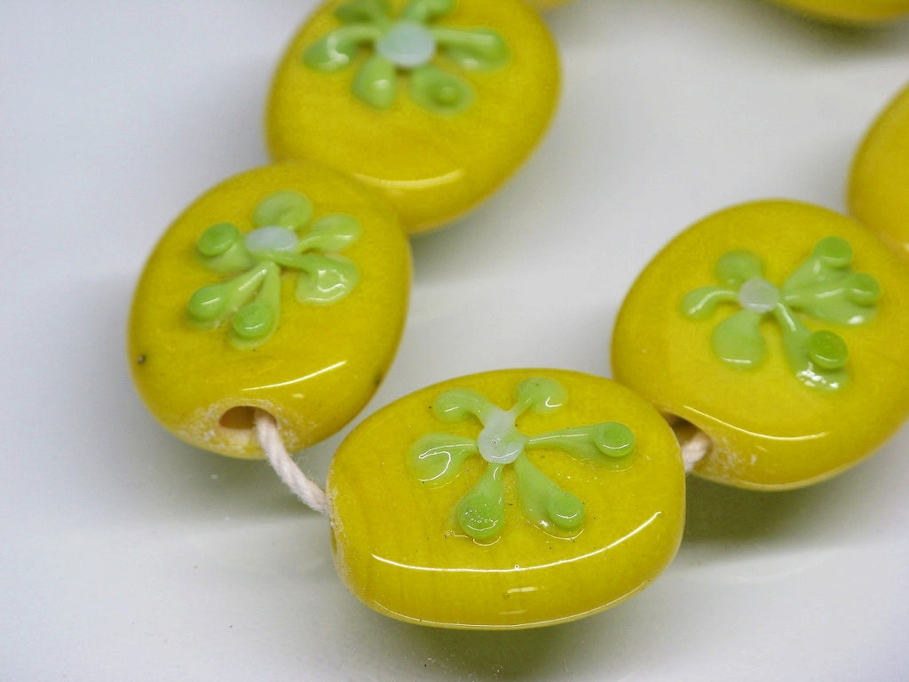 インドネシア・ジャワの工房で作られた丸形とんぼ玉のうち、「花」をモチーフとしたものは数多くあります。歴史が長いタイプのためほとんど無限と思われるほどさまざまなデザインがあり、また、そのことで同色同デザインの再現が難しいタイプです。数十年前にインドネシアで初めて見たこれらのとんぼ玉に魅せられて今この仕事をしているといっても過言ではありません。トコ・ビーズの最も古い商品の一つです。(この商品は手作りジュエリー・アクセサリーパーツ・エスニック雑貨として販売しています)