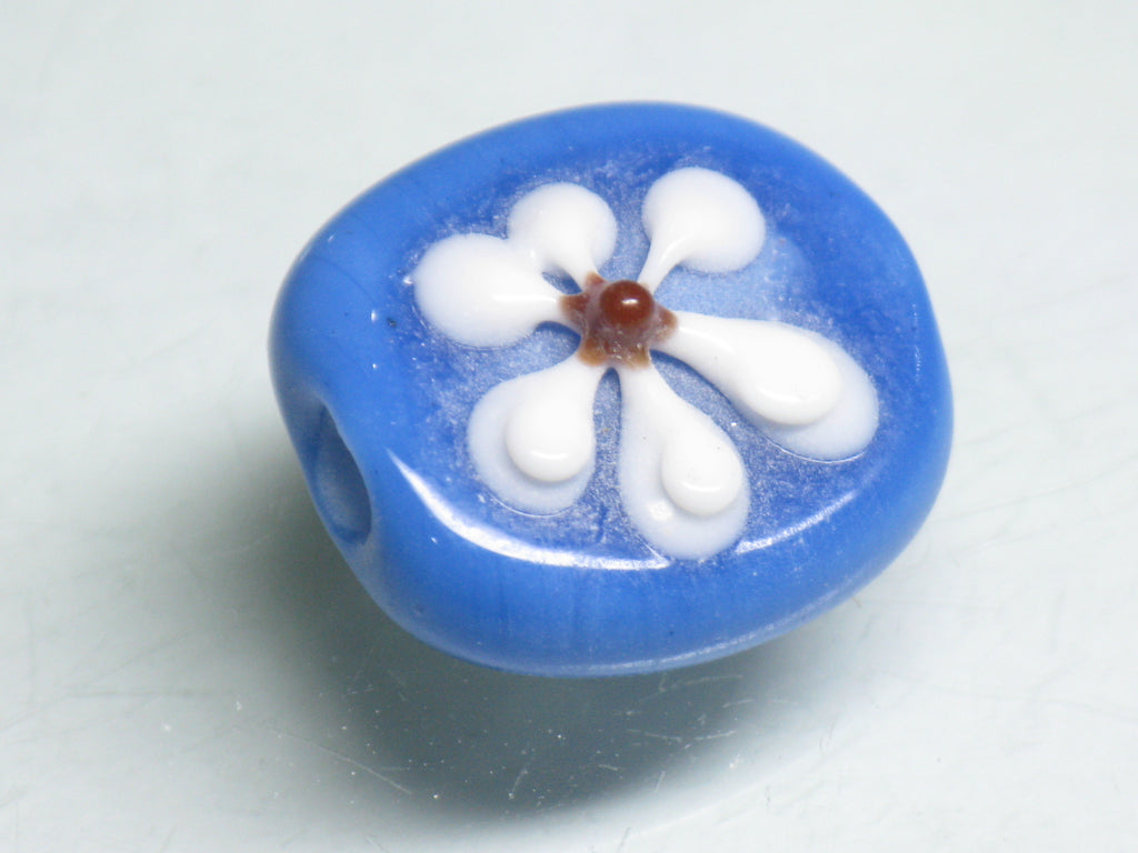 インドネシア・ジャワの工房で作られた丸形とんぼ玉のうち、「花」をモチーフとしたものは数多くあります。歴史が長いタイプのためほとんど無限と思われるほどさまざまなデザインがあり、また、そのことで同色同デザインの再現が難しいタイプです。数十年前にインドネシアで初めて見たこれらのとんぼ玉に魅せられて今この仕事をしているといっても過言ではありません。トコ・ビーズの最も古い商品の一つです。(この商品は手作りジュエリー・アクセサリーパーツ・エスニック雑貨として販売しています)