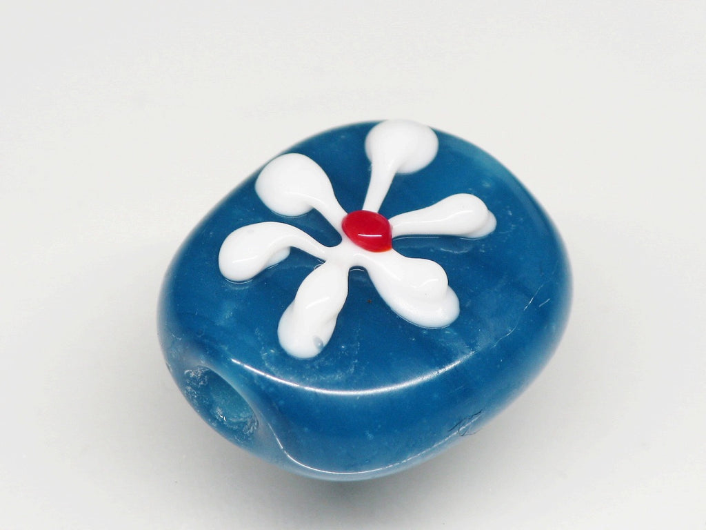 インドネシア・ジャワの工房で作られた丸形とんぼ玉のうち、「花」をモチーフとしたものは数多くあります。歴史が長いタイプのためほとんど無限と思われるほどさまざまなデザインがあり、また、そのことで同色同デザインの再現が難しいタイプです。数十年前にインドネシアで初めて見たこれらのとんぼ玉に魅せられて今この仕事をしているといっても過言ではありません。トコ・ビーズの最も古い商品の一つです。(この商品は手作りジュエリー・アクセサリーパーツ・エスニック雑貨として販売しています)
