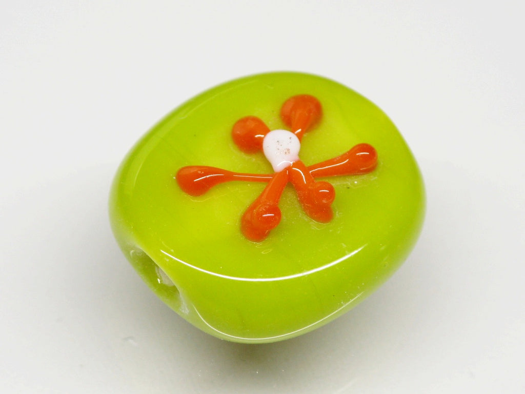 インドネシア・ジャワの工房で作られた丸形とんぼ玉のうち、「花」をモチーフとしたものは数多くあります。歴史が長いタイプのためほとんど無限と思われるほどさまざまなデザインがあり、また、そのことで同色同デザインの再現が難しいタイプです。数十年前にインドネシアで初めて見たこれらのとんぼ玉に魅せられて今この仕事をしているといっても過言ではありません。トコ・ビーズの最も古い商品の一つです。(この商品は手作りジュエリー・アクセサリーパーツ・エスニック雑貨として販売しています)