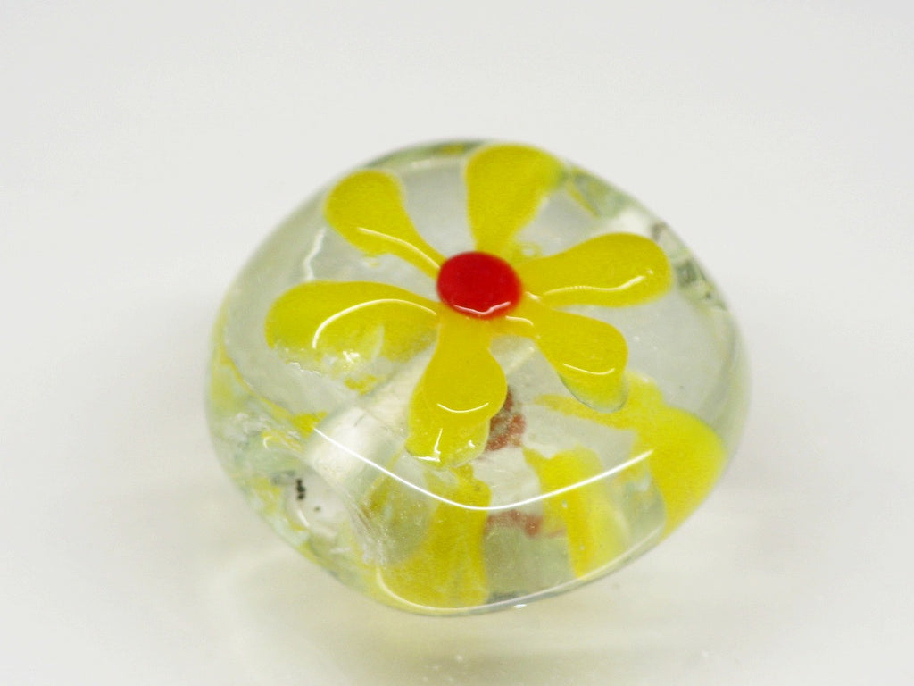 インドネシア・ジャワの工房で作られた丸形とんぼ玉のうち、「花」をモチーフとしたものは数多くあります。歴史が長いタイプのためほとんど無限と思われるほどさまざまなデザインがあり、また、そのことで同色同デザインの再現が難しいタイプです。数十年前にインドネシアで初めて見たこれらのとんぼ玉に魅せられて今この仕事をしているといっても過言ではありません。トコ・ビーズの最も古い商品の一つです。(この商品は手作りジュエリー・アクセサリーパーツ・エスニック雑貨として販売しています)
