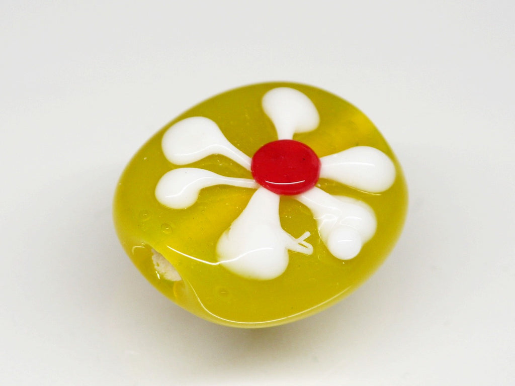 インドネシア・ジャワの工房で作られた丸形とんぼ玉のうち、「花」をモチーフとしたものは数多くあります。歴史が長いタイプのためほとんど無限と思われるほどさまざまなデザインがあり、また、そのことで同色同デザインの再現が難しいタイプです。数十年前にインドネシアで初めて見たこれらのとんぼ玉に魅せられて今この仕事をしているといっても過言ではありません。トコ・ビーズの最も古い商品の一つです。(この商品は手作りジュエリー・アクセサリーパーツ・エスニック雑貨として販売しています)