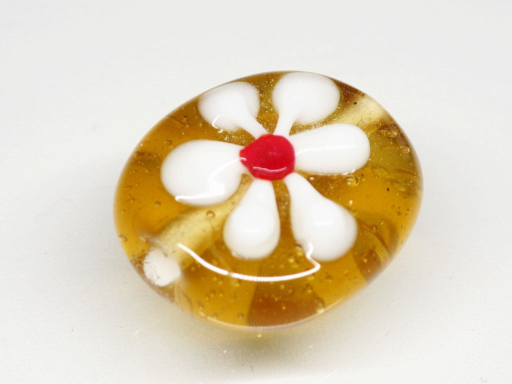 インドネシア・ジャワの工房で作られた丸形とんぼ玉のうち、「花」をモチーフとしたものは数多くあります。歴史が長いタイプのためほとんど無限と思われるほどさまざまなデザインがあり、また、そのことで同色同デザインの再現が難しいタイプです。数十年前にインドネシアで初めて見たこれらのとんぼ玉に魅せられて今この仕事をしているといっても過言ではありません。トコ・ビーズの最も古い商品の一つです。(この商品は手作りジュエリー・アクセサリーパーツ・エスニック雑貨として販売しています)