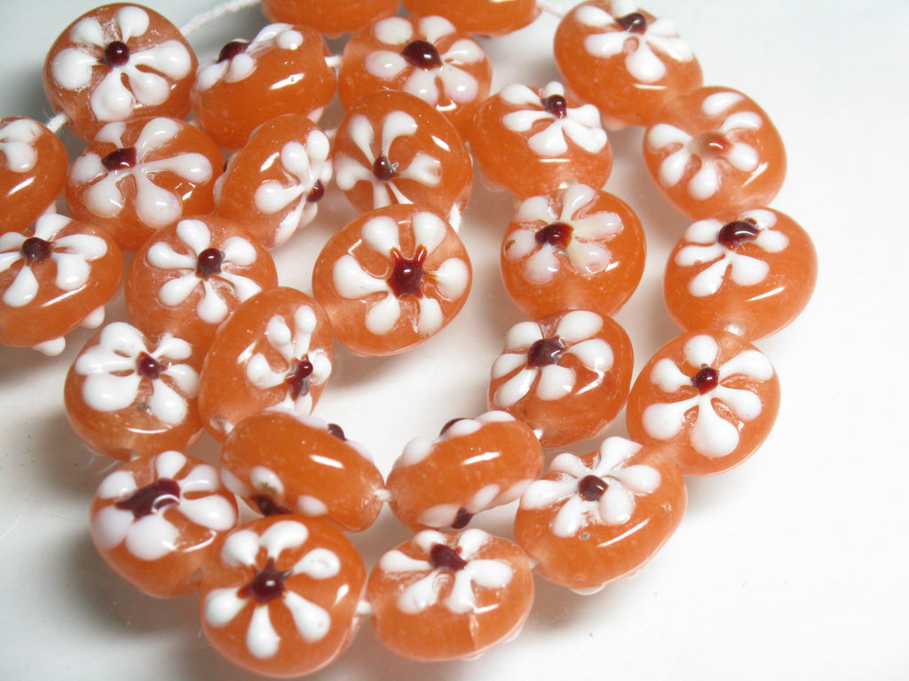インドネシア・ジャワの工房で作られた丸形とんぼ玉のうち、「花」をモチーフとしたものは数多くあります。歴史が長いタイプのためほとんど無限と思われるほどさまざまなデザインがあり、また、そのことで同色同デザインの再現が難しいタイプです。数十年前にインドネシアで初めて見たこれらのとんぼ玉に魅せられて今この仕事をしているといっても過言ではありません。トコ・ビーズの最も古い商品の一つです。(この商品は手作りジュエリー・アクセサリーパーツ・エスニック雑貨として販売しています)