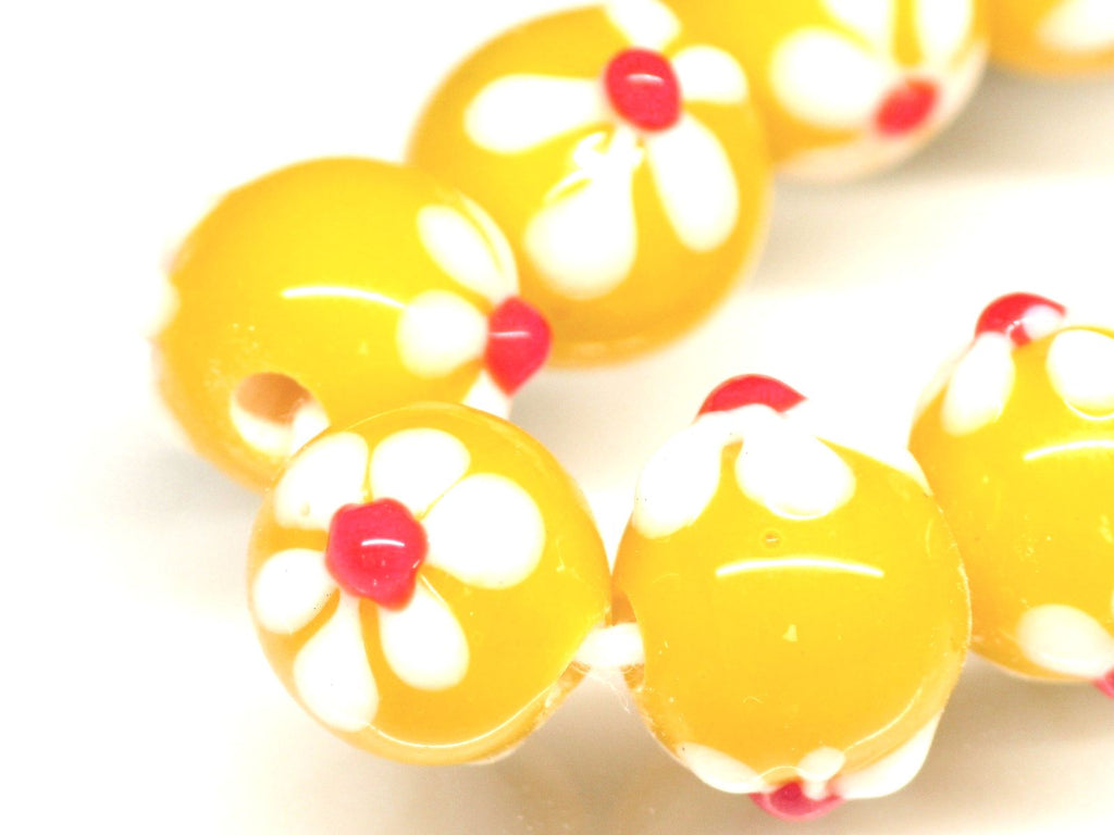 ジャワの丸形花柄ビーズ10㎜タイプです。従来品を少し小ぶりにしたため、ビーズのサイズと花柄のサイズのバランスが良くなりました。形状も真球に近くなりました。