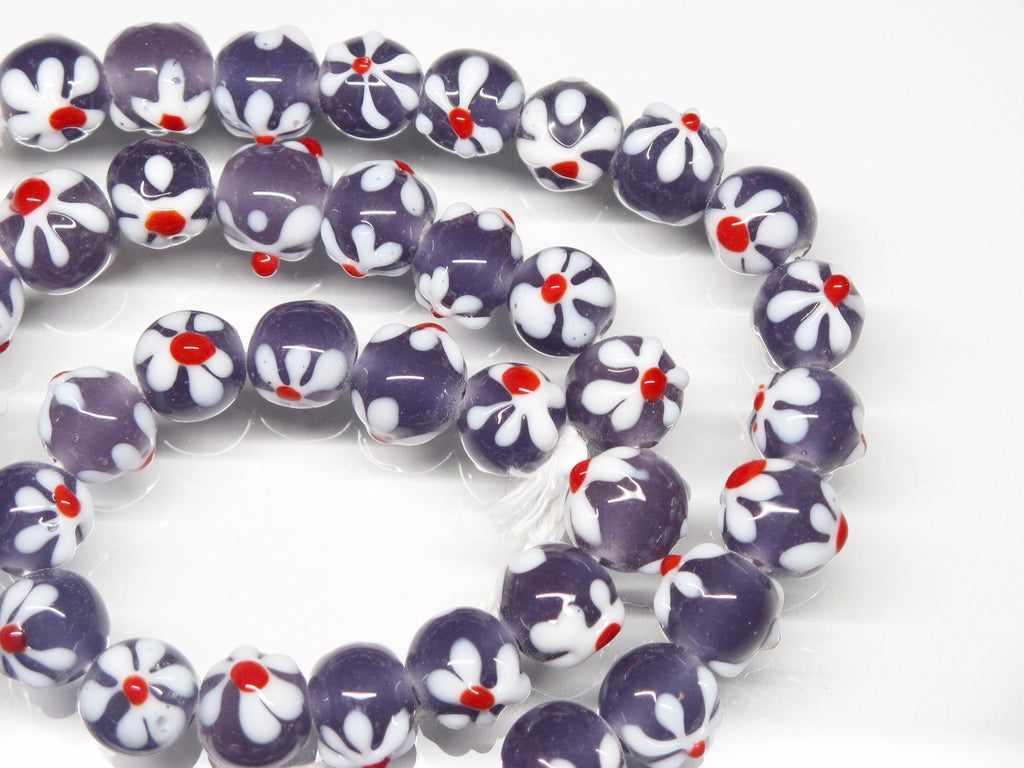 ジャワの丸形花柄ビーズ10㎜タイプです。従来品を少し小ぶりにしたため、ビーズのサイズと花柄のサイズのバランスが良くなりました。形状も真球に近くなりました。