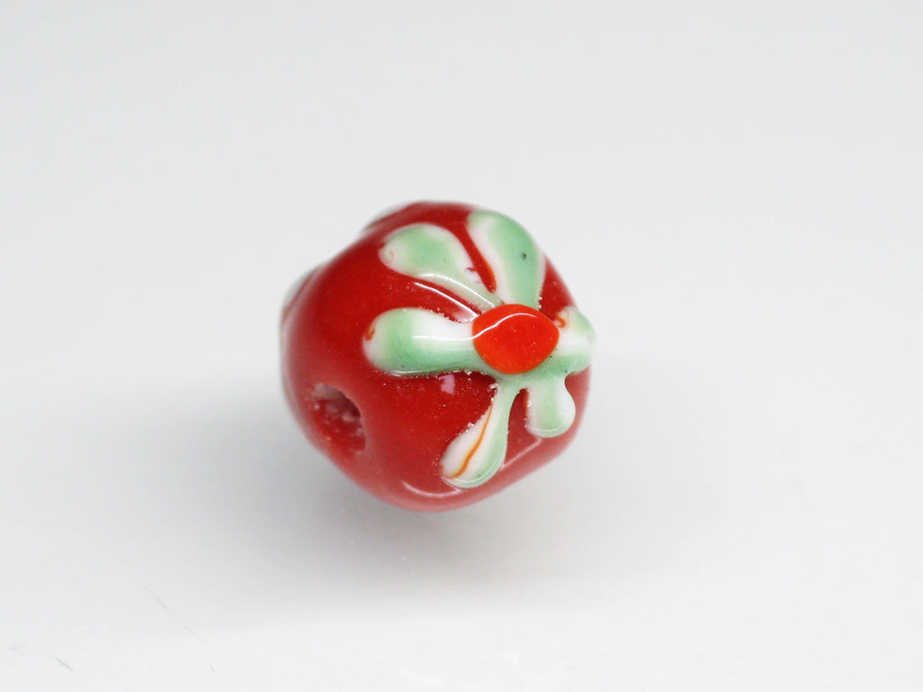 ジャワの丸形花柄ビーズ10㎜タイプです。従来品を少し小ぶりにしたため、ビーズのサイズと花柄のサイズのバランスが良くなりました。形状も真球に近くなりました。
