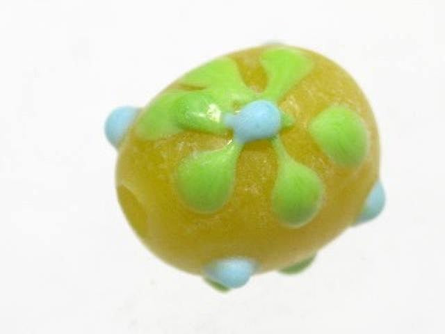 インドネシア・ジャワの工房で作られた丸形とんぼ玉のうち、「花」をモチーフとしたものは数多くあります。歴史が長いタイプのためほとんど無限と思われるほどさまざまなデザインがあり、また、そのことで同色同デザインの再現が難しいタイプです。数十年前にインドネシアで初めて見たこれらのとんぼ玉に魅せられて今この仕事をしているといっても過言ではありません。トコ・ビーズの最も古い商品の一つです。(この商品は手作りジュエリー・アクセサリーパーツ・エスニック雑貨として販売しています)