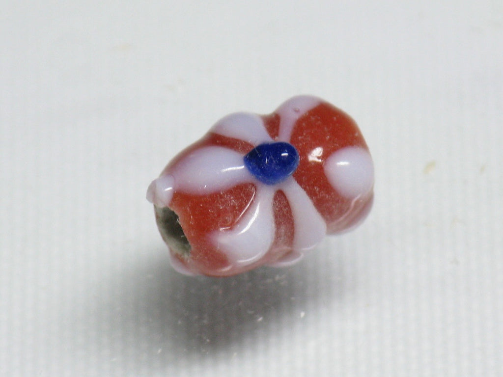インドネシア・ジャワの工房で作られた丸形とんぼ玉のうち、「花」をモチーフとしたものは数多くあります。歴史が長いタイプのためほとんど無限と思われるほどさまざまなデザインがあり、また、そのことで同色同デザインの再現が難しいタイプです。数十年前にインドネシアで初めて見たこれらのとんぼ玉に魅せられて今この仕事をしているといっても過言ではありません。トコ・ビーズの最も古い商品の一つです。(この商品は手作りジュエリー・アクセサリーパーツ・エスニック雑貨として販売しています)