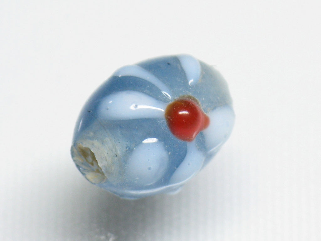 インドネシア・ジャワの工房で作られた丸形とんぼ玉のうち、「花」をモチーフとしたものは数多くあります。歴史が長いタイプのためほとんど無限と思われるほどさまざまなデザインがあり、また、そのことで同色同デザインの再現が難しいタイプです。数十年前にインドネシアで初めて見たこれらのとんぼ玉に魅せられて今この仕事をしているといっても過言ではありません。トコ・ビーズの最も古い商品の一つです。(この商品は手作りジュエリー・アクセサリーパーツ・エスニック雑貨として販売しています)
