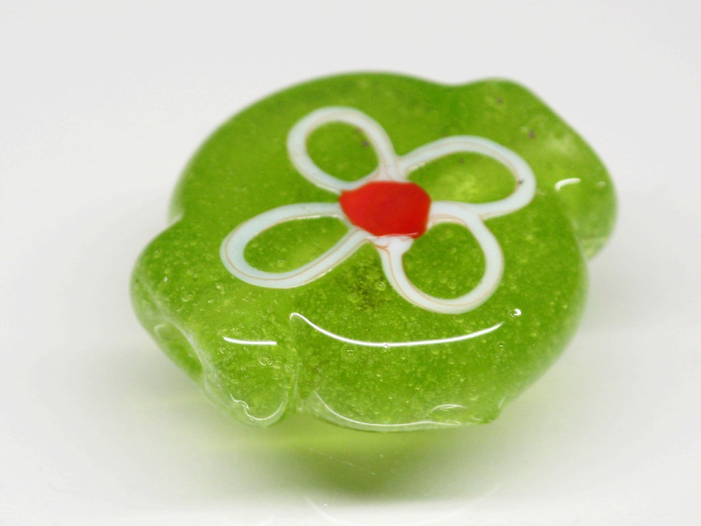 インドネシア・ジャワの工房で作られた丸形とんぼ玉のうち、「花」をモチーフとしたものは数多くあります。歴史が長いタイプのためほとんど無限と思われるほどさまざまなデザインがあり、また、そのことで同色同デザインの再現が難しいタイプです。数十年前にインドネシアで初めて見たこれらのとんぼ玉に魅せられて今この仕事をしているといっても過言ではありません。トコ・ビーズの最も古い商品の一つです。(この商品は手作りジュエリー・アクセサリーパーツ・エスニック雑貨として販売しています)