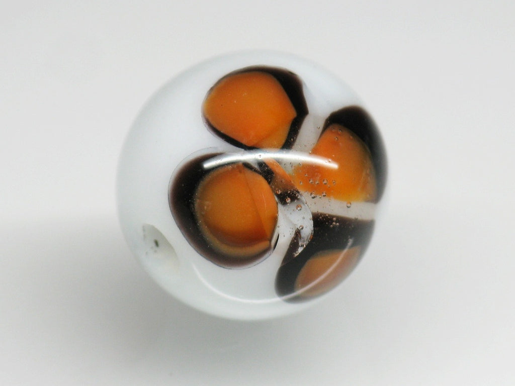 インドネシア・ジャワの工房で作られた丸形とんぼ玉のうち、「花」をモチーフとしたものは数多くあります。歴史が長いタイプのためほとんど無限と思われるほどさまざまなデザインがあり、また、そのことで同色同デザインの再現が難しいタイプです。数十年前にインドネシアで初めて見たこれらのとんぼ玉に魅せられて今この仕事をしているといっても過言ではありません。トコ・ビーズの最も古い商品の一つです。(この商品は手作りジュエリー・アクセサリーパーツ・エスニック雑貨として販売しています)
