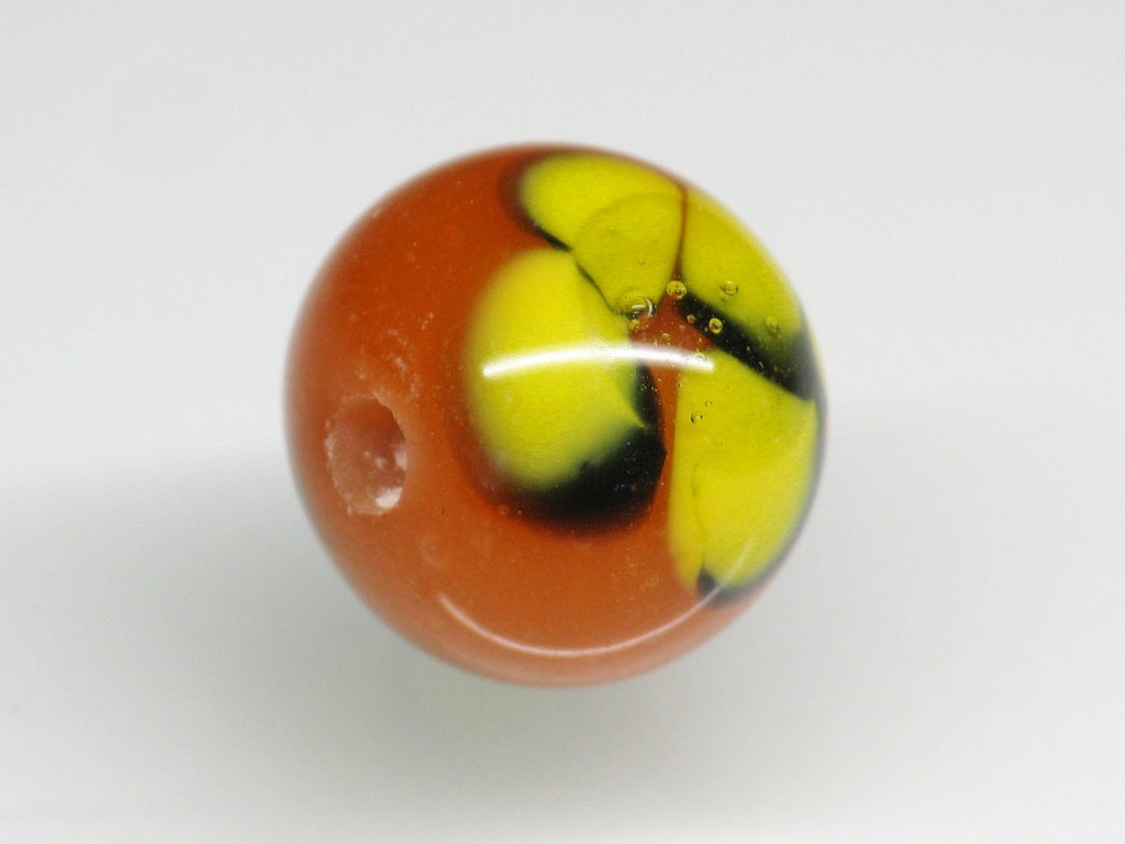 インドネシア・ジャワの工房で作られた丸形とんぼ玉のうち、「花」をモチーフとしたものは数多くあります。歴史が長いタイプのためほとんど無限と思われるほどさまざまなデザインがあり、また、そのことで同色同デザインの再現が難しいタイプです。数十年前にインドネシアで初めて見たこれらのとんぼ玉に魅せられて今この仕事をしているといっても過言ではありません。トコ・ビーズの最も古い商品の一つです。(この商品は手作りジュエリー・アクセサリーパーツ・エスニック雑貨として販売しています)