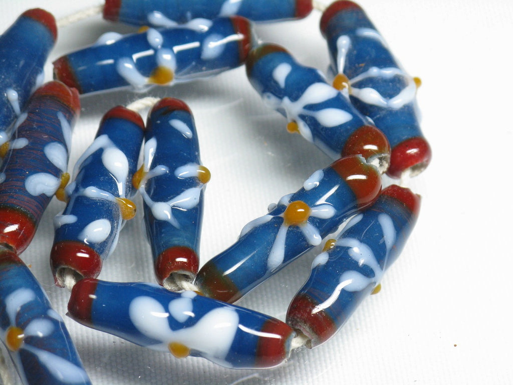 形状が細長い(チューブ型)の花柄をあしらった定番商品です。(この商品は手作りジュエリー・アクセサリーパーツ・エスニック雑貨として販売しています)