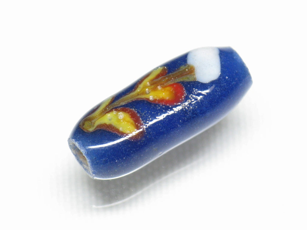 形状が細長い(チューブ型)の花柄をあしらった定番商品です(この商品は手作りジュエリー・アクセサリーパーツ・エスニック雑貨として販売しています)
