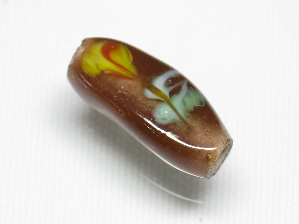 形状が細長い(チューブ型)の花柄をあしらった定番商品です(この商品は手作りジュエリー・アクセサリーパーツ・エスニック雑貨として販売しています)