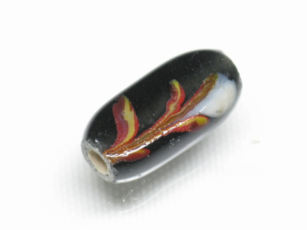 形状が細長い(チューブ型)の花柄をあしらった定番商品です(この商品は手作りジュエリー・アクセサリーパーツ・エスニック雑貨として販売しています)