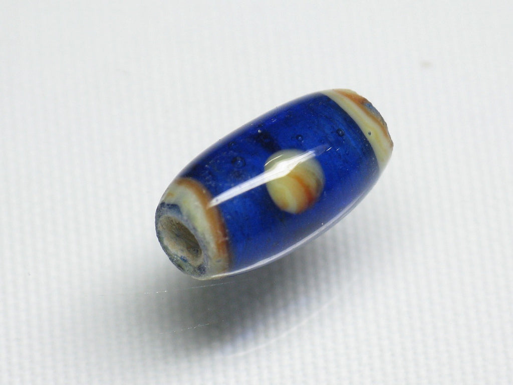 ジャワのランプワークガラスビーズ。両端にカラーベルトを配したデザインで、太鼓の形に似ていることから「太鼓型」と呼んでいます。