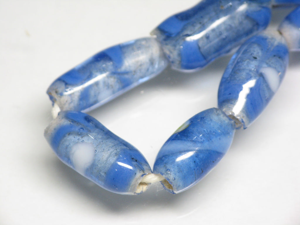 ジャワのランプワークガラスビーズ。両端にカラーベルトを配したデザインで、太鼓の形に似ていることから「太鼓型」と呼んでいます。