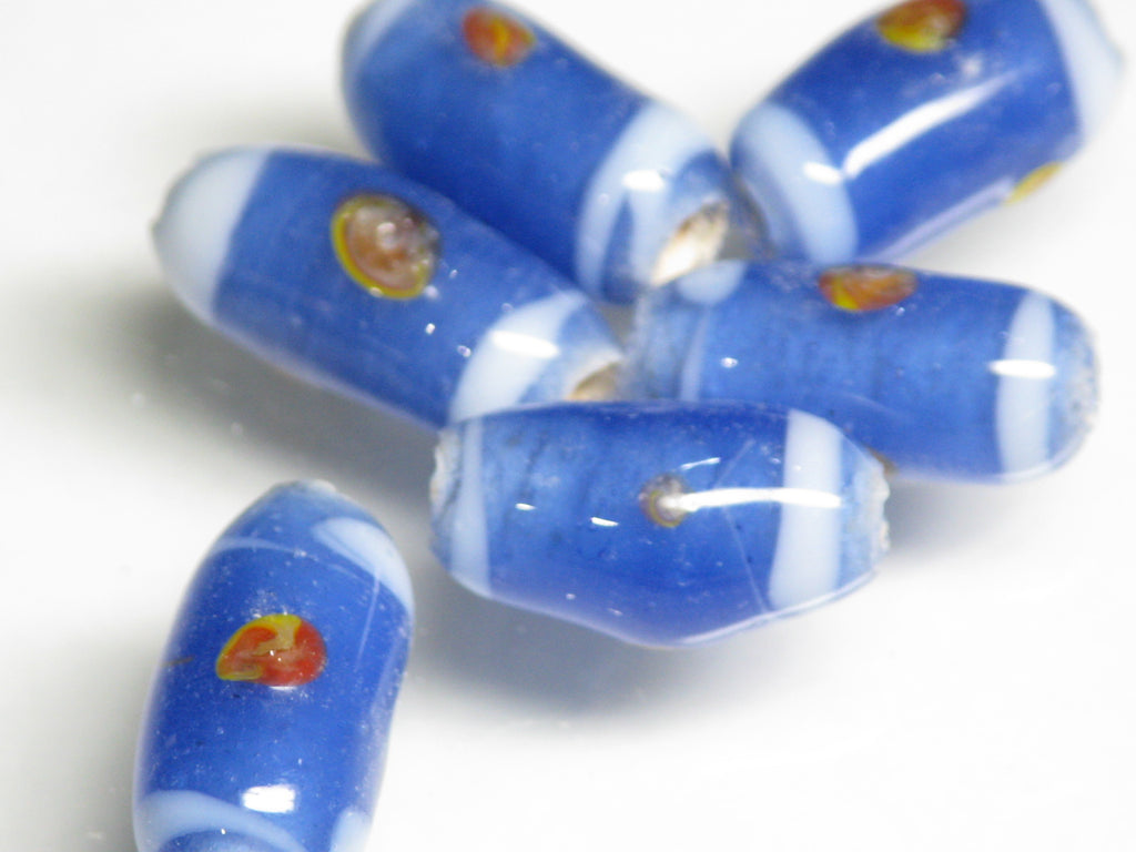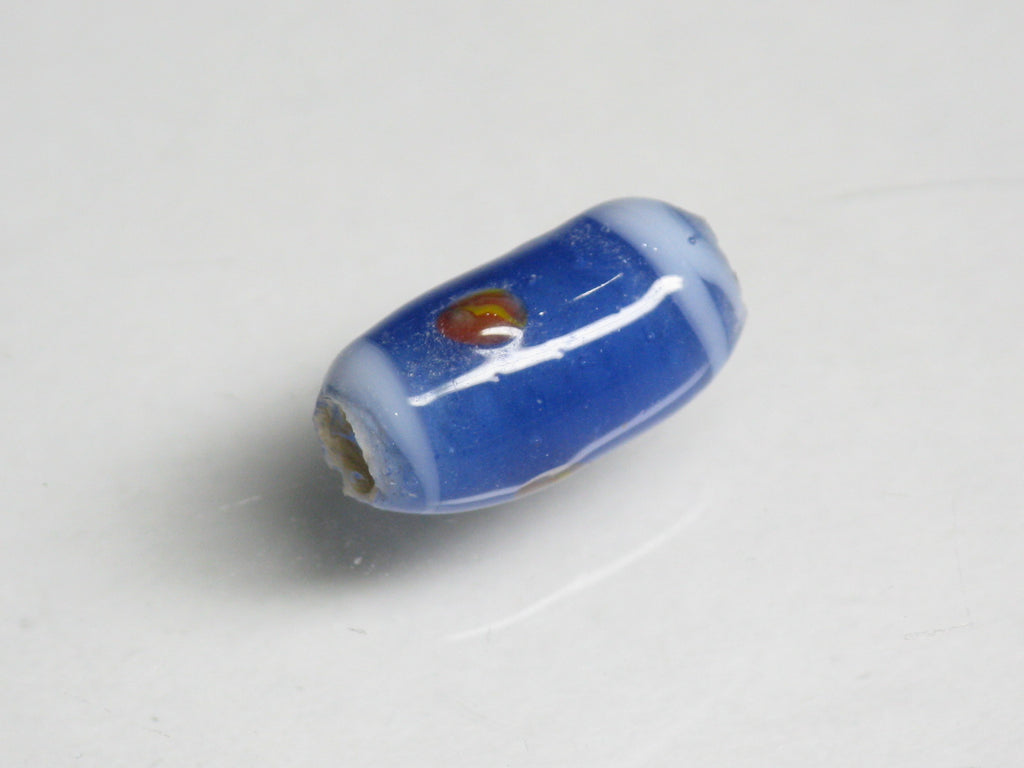 ジャワのランプワークガラスビーズ。両端にカラーベルトを配したデザインで、太鼓の形に似ていることから「太鼓型」と呼んでいます。