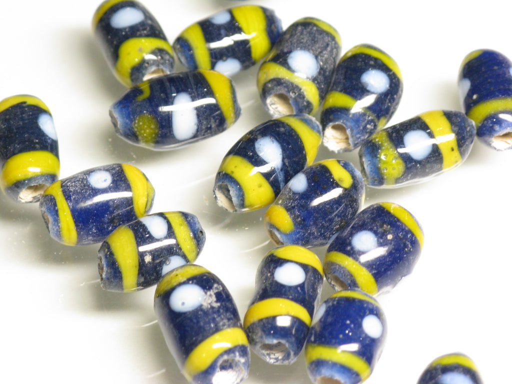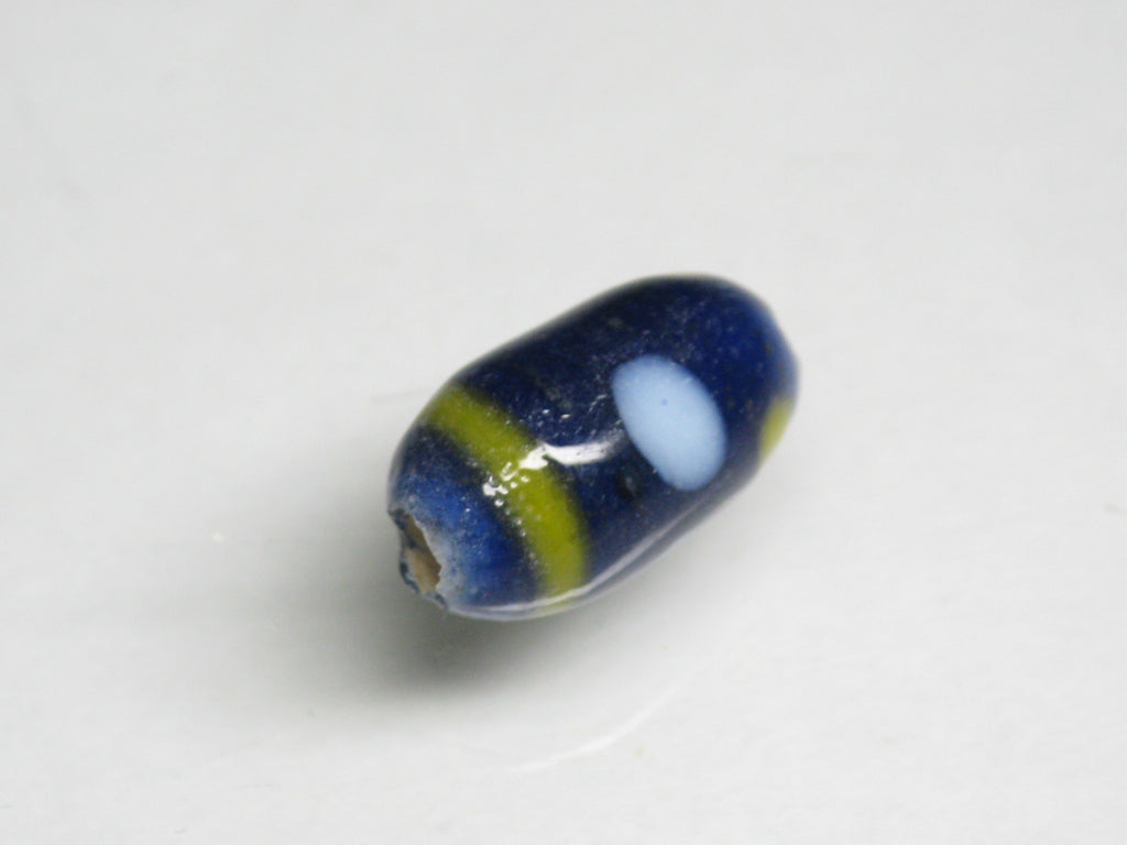 ジャワのランプワークガラスビーズ。両端にカラーベルトを配したデザインで、太鼓の形に似ていることから「太鼓型」と呼んでいます。