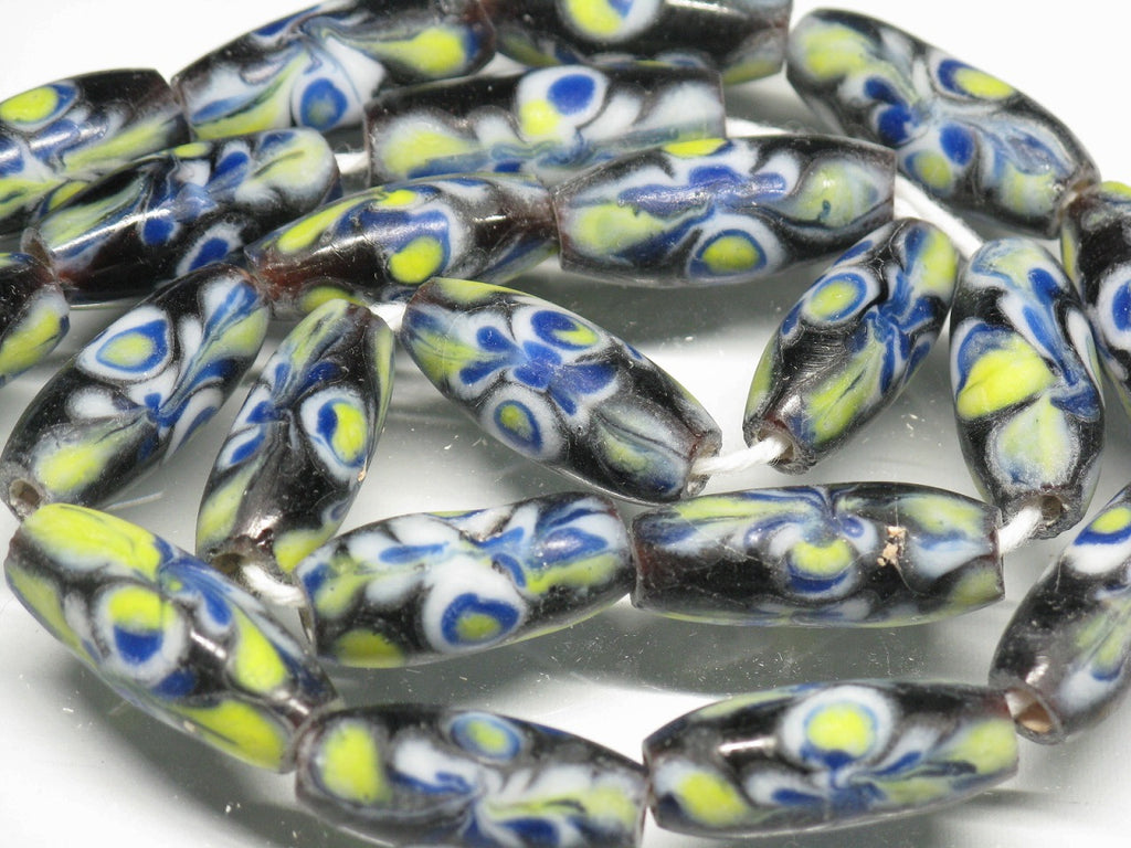 スポット&ストライプとんぼ玉。ジャワの伝統的・定番のバレル型ビーズです。(この商品は手作りジュエリー・アクセサリーパーツ・エスニック雑貨として販売しています)