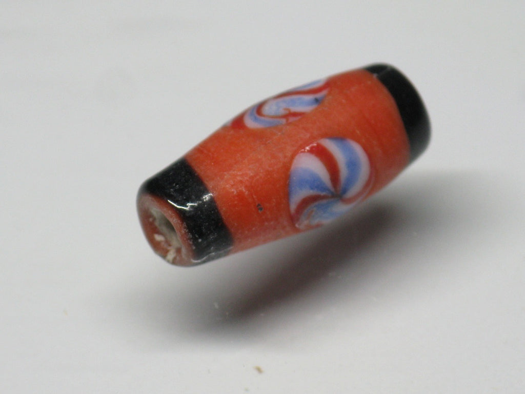 スポット&ストライプとんぼ玉。ジャワの伝統的・定番のバレル型ビーズです。(この商品は手作りジュエリー・アクセサリーパーツ・エスニック雑貨として販売しています)