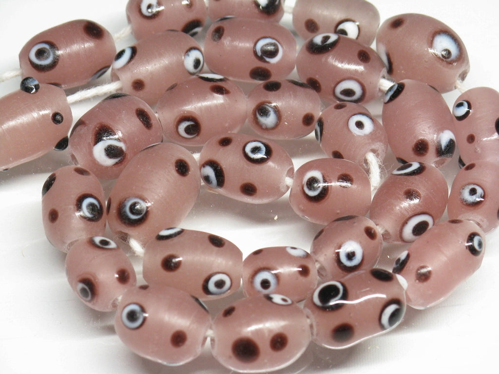スポット&ストライプとんぼ玉。ジャワの伝統的・定番のバレル型ビーズです。(この商品は手作りジュエリー・アクセサリーパーツ・エスニック雑貨として販売しています)