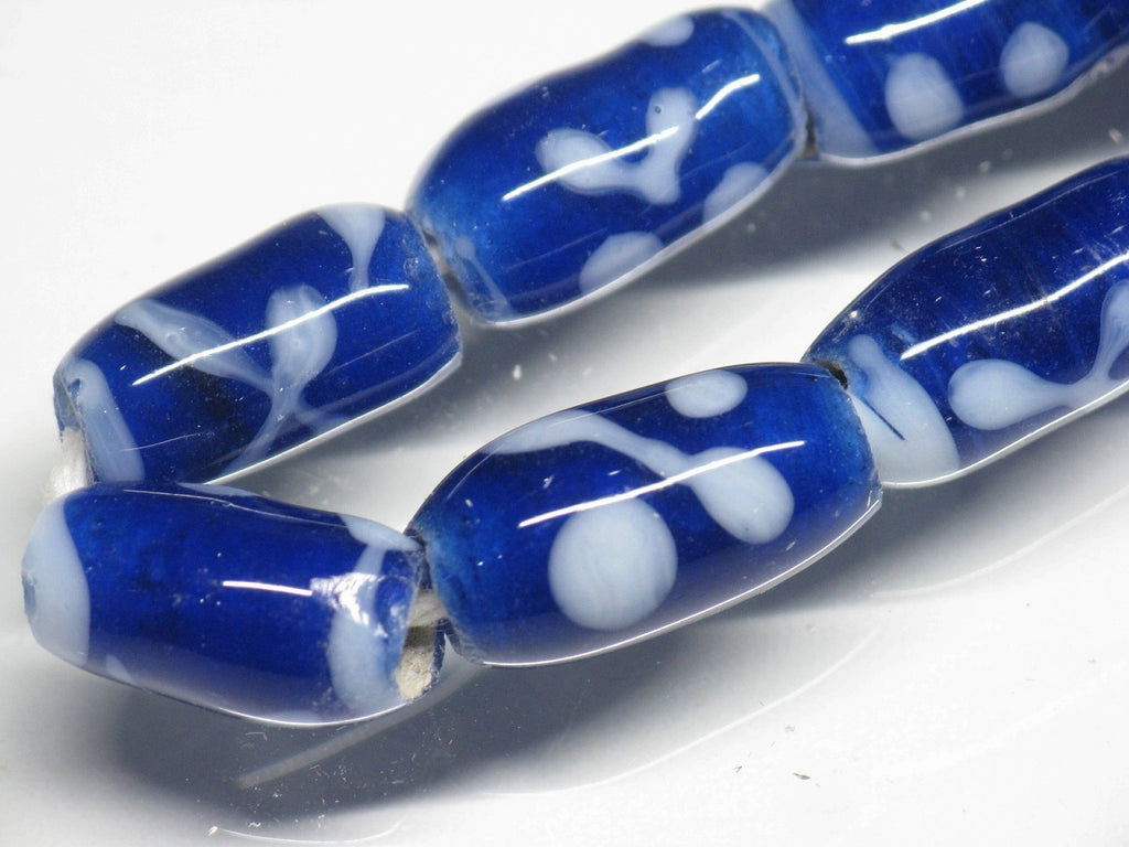 スポット&ストライプとんぼ玉。ジャワの伝統的・定番のバレル型ビーズです。(この商品は手作りジュエリー・アクセサリーパーツ・エスニック雑貨として販売しています)