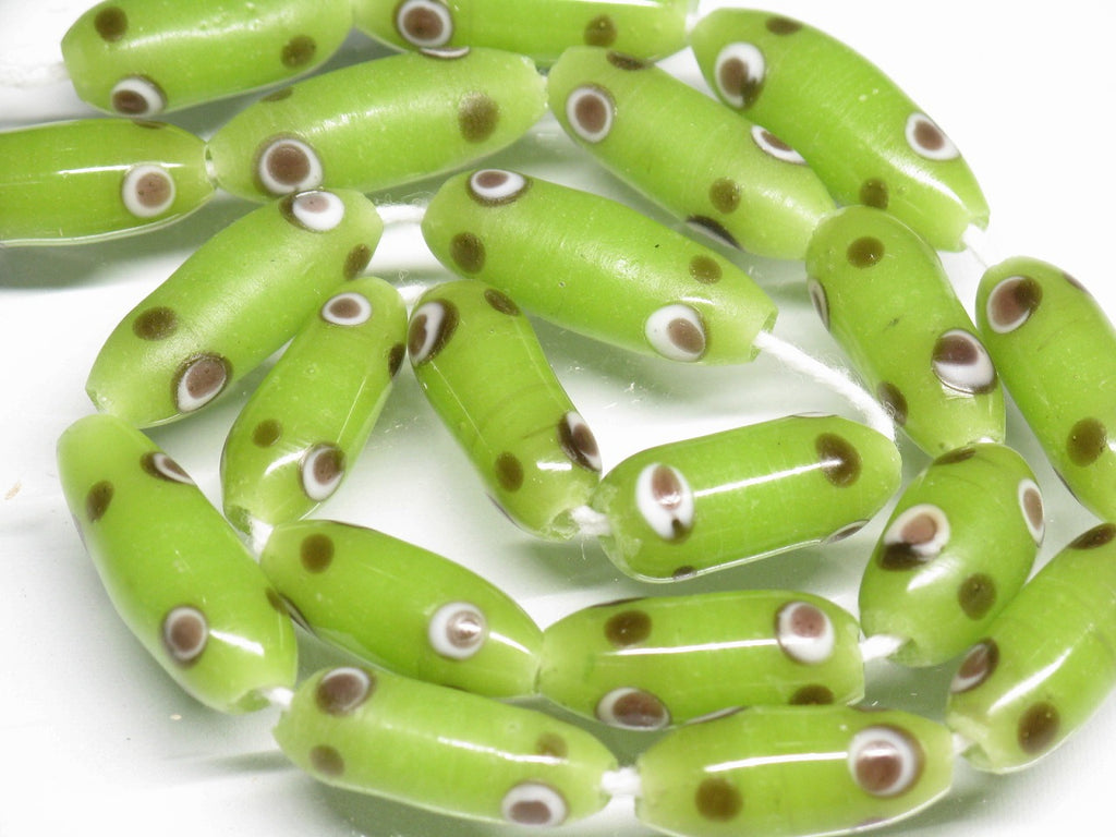 スポット&ストライプとんぼ玉。ジャワの伝統的・定番のバレル型ビーズです。(この商品は手作りジュエリー・アクセサリーパーツ・エスニック雑貨として販売しています)