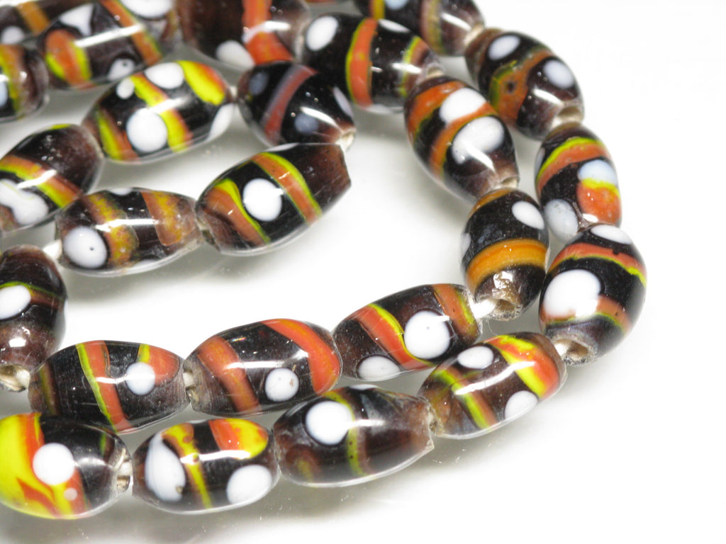 スポット&ストライプとんぼ玉。ジャワの伝統的・定番のバレル型ビーズです。(この商品は手作りジュエリー・アクセサリーパーツ・エスニック雑貨として販売しています)