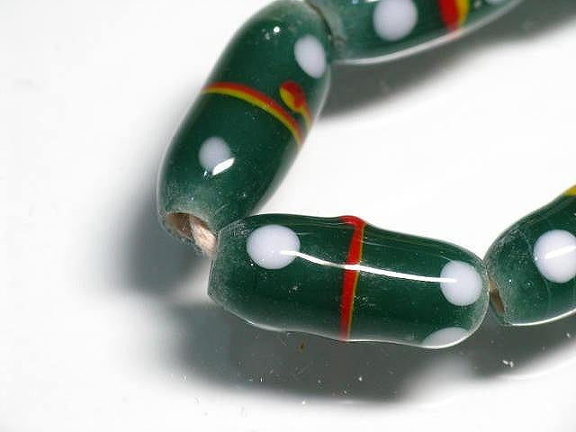 スポット&ストライプとんぼ玉。ジャワの伝統的・定番のバレル型ビーズです。(この商品は手作りジュエリー・アクセサリーパーツ・エスニック雑貨として販売しています)
