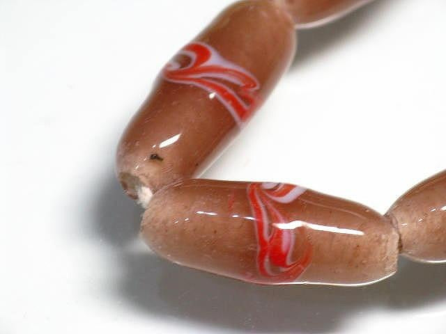 スポット&ストライプとんぼ玉。ジャワの伝統的・定番のバレル型ビーズです。(この商品は手作りジュエリー・アクセサリーパーツ・エスニック雑貨として販売しています)