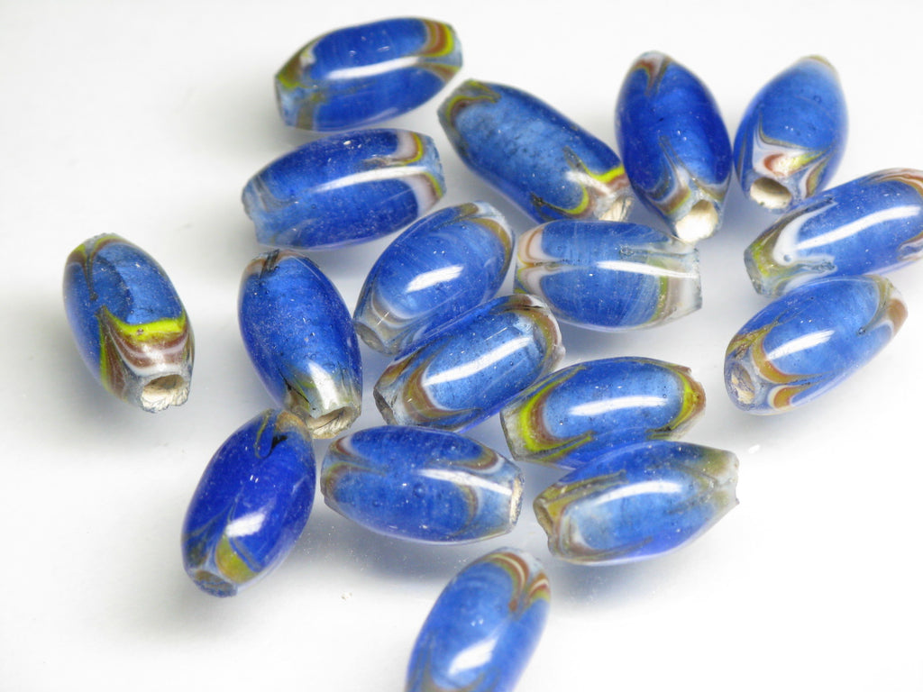 墨流し柄とんぼ玉。ジャワの伝統的・定番のバレル型ビーズです。(この商品は手作りジュエリー・アクセサリーパーツ・エスニック雑貨として販売しています)