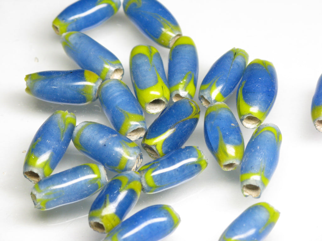 墨流し柄とんぼ玉。ジャワの伝統的・定番のバレル型ビーズです。(この商品は手作りジュエリー・アクセサリーパーツ・エスニック雑貨として販売しています)