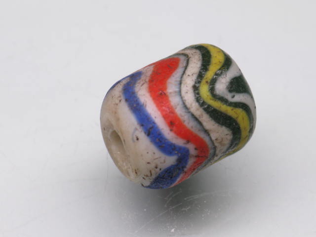 現代ジャワのとんぼ玉。アフリカのとんぼ玉の模写の雰囲気が見て取れますが、模写もなかなかたいへんで伝統的な高度な技法が必要です。(この商品は手作りジュエリー・アクセサリーパーツ・エスニック雑貨として販売しています)