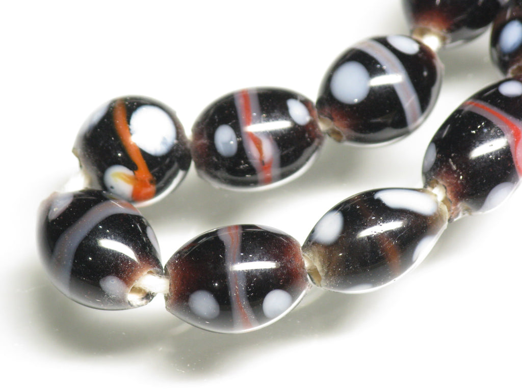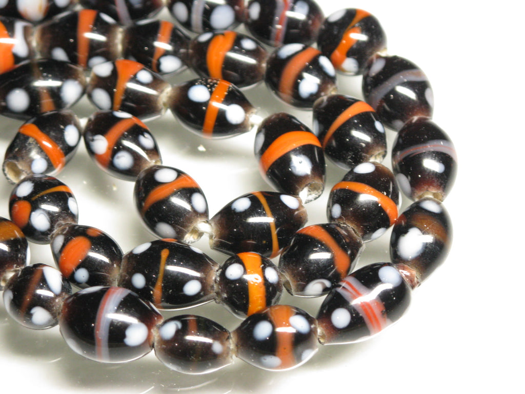 スポット&ストライプとんぼ玉。ジャワの伝統的・定番のバレル型ビーズです。(この商品は手作りジュエリー・アクセサリーパーツ・エスニック雑貨として販売しています)