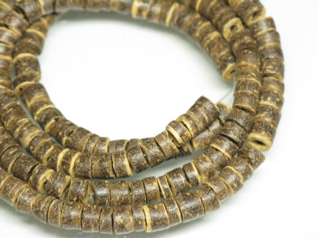 ココナッツビーズです。東南アジア・南アジアでは古くからココナッツをビーズに仕立てて利用しています。どこに行ってもすぐに見つかるほどの定番ビーズです。(この商品は手作りジュエリー・アクセサリーパーツ・エスニック雑貨として販売しています)