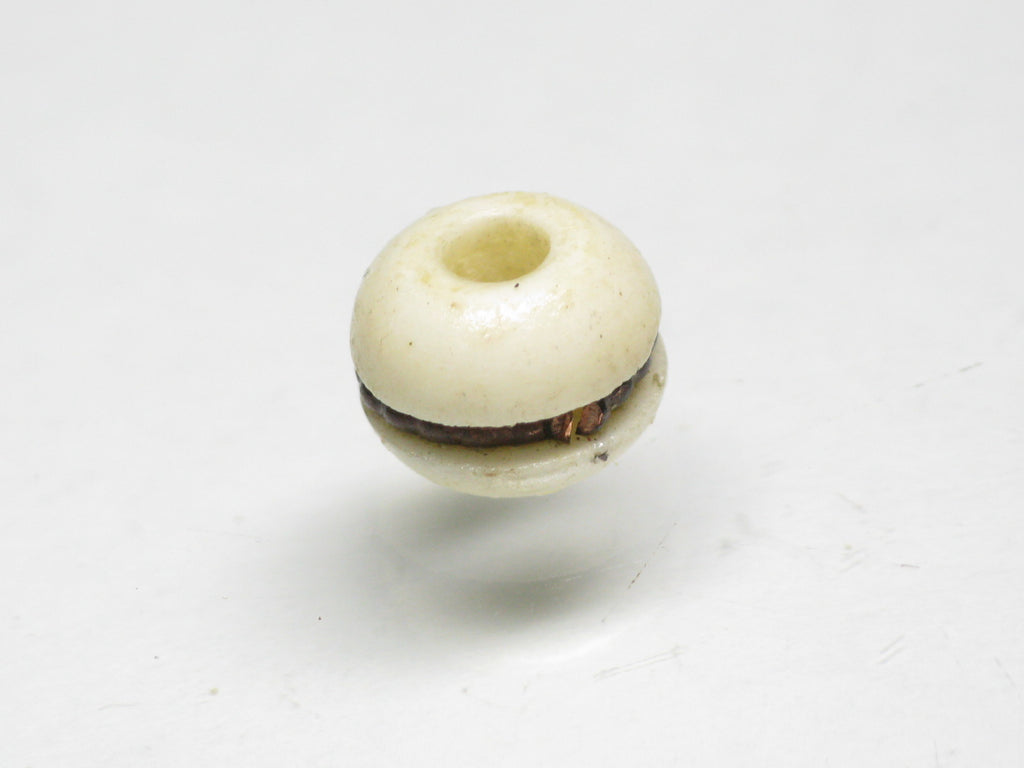 Tibetan bone beads made of yak bone with stones and brass embedded in the sides. They are used in Tibet for beads.