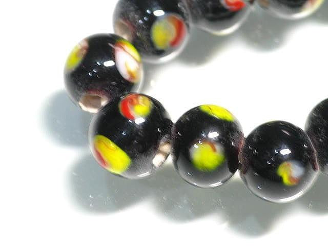 A traditional round lampwork bead with a combination of relatively small spots and stripes made in a workshop in Java, Indonesia. Since it has a long history, there are so many different designs that it seems almost infinite, and it is difficult to reproduce the same color and design. It is no exaggeration to say that I am doing this job now because I was fascinated by these lampwork bead that I saw for the first time in Indonesia decades ago.