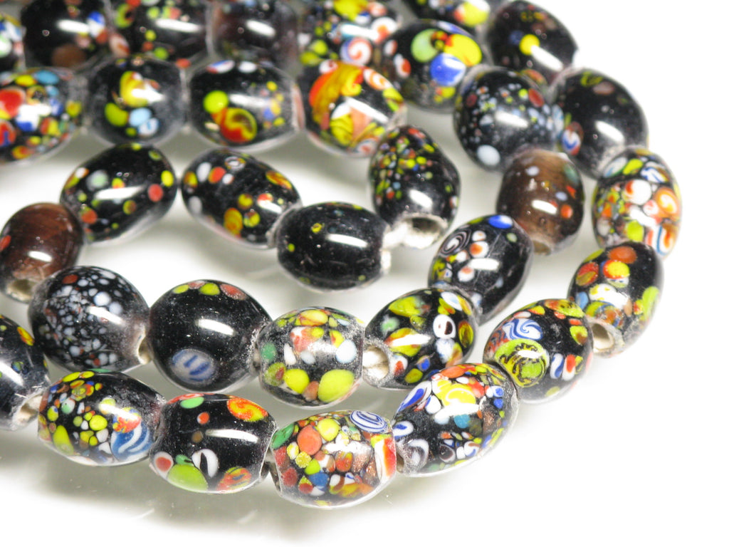 It is a Javanese lampwork bead with a spray dot pattern. Since it is a sprayed pattern, the pattern of all individuals is different.