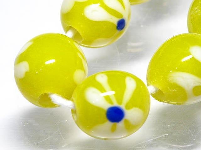 Among the round lampwork bead made at the workshop in Java, Indonesia, there are many with the motif of "flowers". Since it has a long history, there are so many different designs that it seems almost infinite, and it is difficult to reproduce the same color and design. It is no exaggeration to say that I am doing this job now because I was fascinated by these lampwork bead that I saw for the first time in Indonesia decades ago.