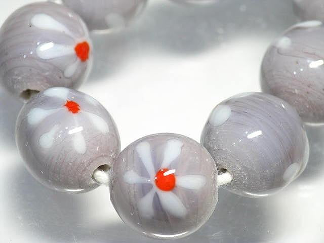 Among the round lampwork bead made at the workshop in Java, Indonesia, there are many with the motif of "flowers". Since it has a long history, there are so many different designs that it seems almost infinite, and it is difficult to reproduce the same color and design. It is no exaggeration to say that I am doing this job now because I was fascinated by these lampwork bead that I saw for the first time in Indonesia decades ago.