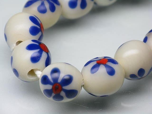 Among the round lampwork bead made at the workshop in Java, Indonesia, there are many with the motif of "flowers". Since it has a long history, there are so many different designs that it seems almost infinite, and it is difficult to reproduce the same color and design. It is no exaggeration to say that I am doing this job now because I was fascinated by these lampwork bead that I saw for the first time in Indonesia decades ago.