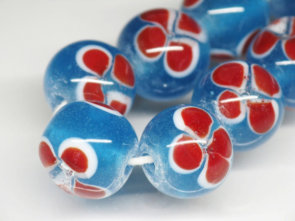 Among the round lamp work bead made at the workshop in Java, Indonesia, there are many with the motif of "flowers". Since it has a long history, there are so many different designs that it seems almost infinite, and it is difficult to reproduce the same color and design.