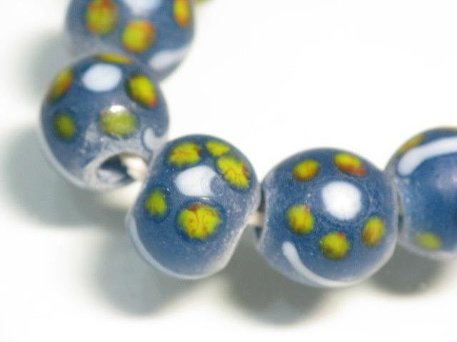 Among the round lampwork bead made at the workshop in Java, Indonesia, there are many with the motif of "flowers". Since it has a long history, there are so many different designs that it seems almost infinite, and it is difficult to reproduce the same color and design. It is no exaggeration to say that I am doing this job now because I was fascinated by these lampwork bead that I saw for the first time in Indonesia decades ago.
