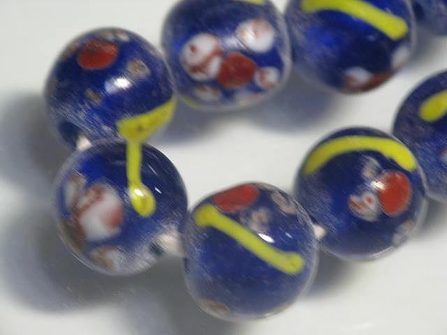 Among the round lampwork bead made at the workshop in Java, Indonesia, there are many with the motif of "flowers". Since it has a long history, there are so many different designs that it seems almost infinite, and it is difficult to reproduce the same color and design. It is no exaggeration to say that I am doing this job now because I was fascinated by these lampwork bead that I saw for the first time in Indonesia decades ago.