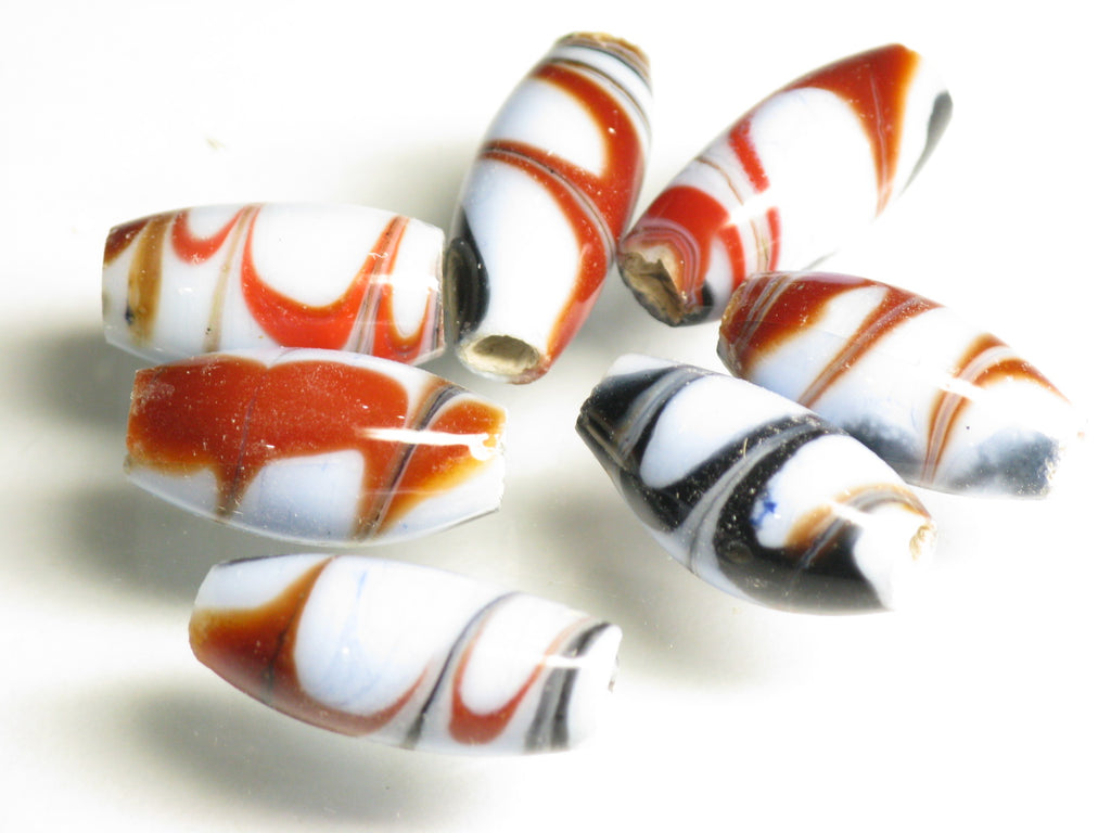 Marbling pattern lampwork bead. Javanese traditional and classic barrel-shaped bead. This product is for handmade accessory and handmade jewelry.