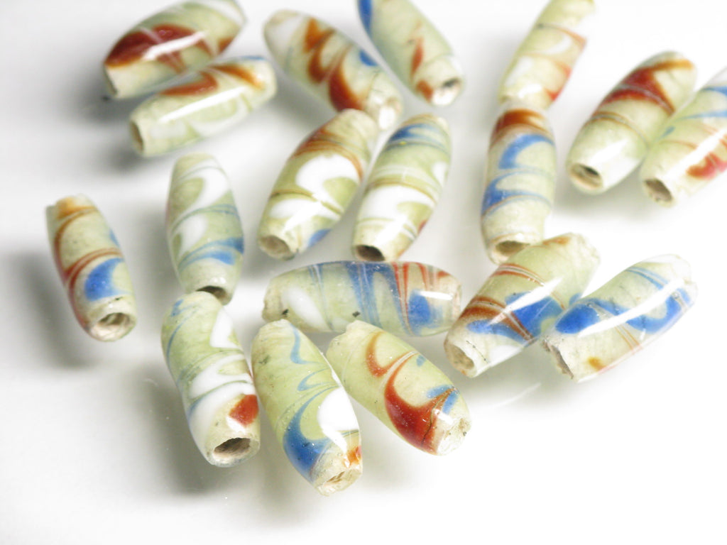 Marbling pattern lampwork bead. Javanese traditional and classic barrel-shaped bead. This product is for handmade accessory and handmade jewelry.